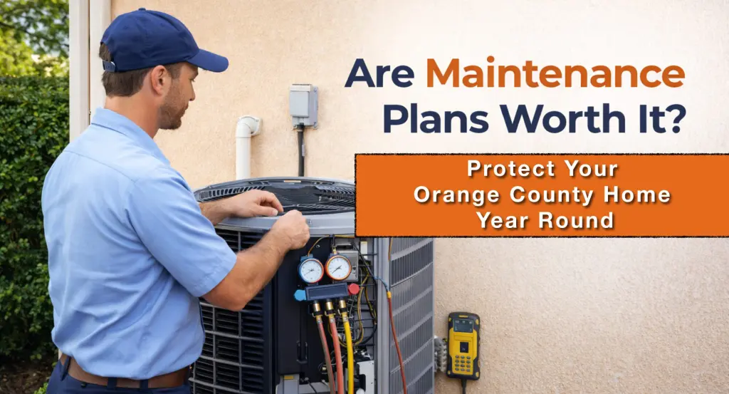Are maintenance plans worth it? Learn how AC system, heating system, and plumbing maintenance plans help Orange County homeowners reduce repair costs, improve efficiency, and extend equipment lifespan.