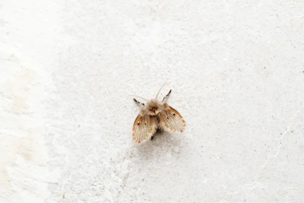 These little guys (technically called Psychodidae, but who’s keeping track?) are about 1/8 inch long and look like tiny moths with fuzzy bodies and wings. They don’t fly around like regular flies – instead, they hop from place to place like they’re playing a very boring game of hopscotch.